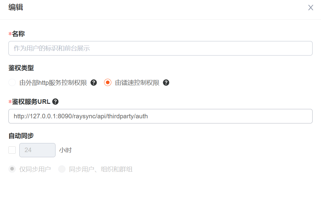 1)由外部http服务控制权限:外部鉴权服务登录镭速,由外部服务控制权限。不会在镭速系统同步创建用户,无法使用外部鉴权服务的账号密码登录镭速系统