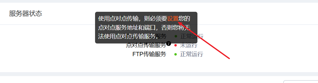 点对点传输服务需配置点对点传输IP个端口才能启动服务,点击